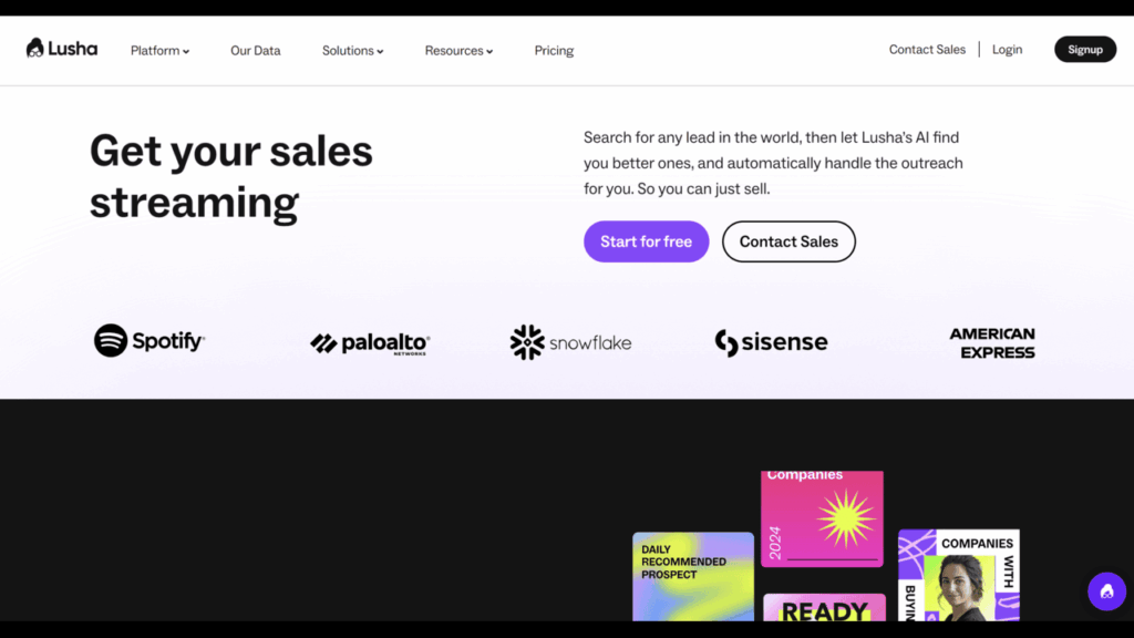 Lusha can help you with lead management, sales intelligence, and contact information of small businesses. Lusha also is very prominent in the market for its lead intent data which finds you your ideal customers.